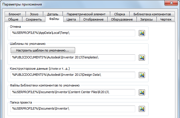По умолчанию библиотека стилей, входящая в комплект поставки Autodesk Inventor, расположена в папке C:\Program Files\Autodesk\Inventor <версия> \Design Data или в папке C:\Users\Public\Documents\Autodesk\Inventor <версия>\Design Data. Библиотека стилей также доступна в диалоговом окне "Параметры приложения" на вкладке "Файл". При работе в сетевой среде эта папка находится в общей папке в сети, а не на локальном жестком диске. Если местоположение этой папки наверняка не известно, обратитесь к ИТ-администратору или администратору САПР.