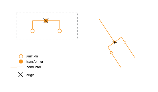 Пример. Шаблон набора электрических элементов состоит из трансформатора, двух соединений и двух проводов. С помощью этого шаблона можно создать пять объектов и применить их атрибуты и взаимосвязи одним щелчком мыши. Шаблон сгруппирован: его можно размещать и перемещать как единый объект. После этого можно продолжить оцифровку проводников.