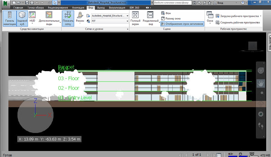 Системы сеток можно применять к моделям в Revit перед их импортом в Autodesk Navisworks.