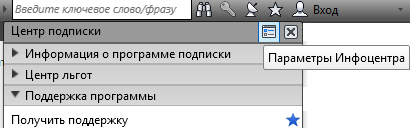 Инфоцентр — функция, которая используется в нескольких продуктах Autodesk. В нем на правой стороне строки заголовков содержится набор инструментов, предоставляющих доступ к многим источникам информации, связанным с продуктами. В зависимости от продукта Autodesk и конфигурации эти инструменты могут отличаться. Например, в некоторых продуктах на панели инструментов Инфоцентр может также быть кнопка Вход для служб Autodesk 360 или ссылка на Autodesk Exchange.