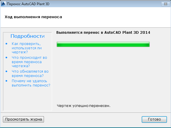 При попытке добавления чертежа, созданного в более ранней версии, в проект, созданный с помощью текущей версии, открывается Мастер переноса чертежа. Будет перенесен только чертеж, который добавляется в проект. При переносе можно создать резервную копию на случай, если в дальнейшем потребуется отредактировать чертеж в более ранней версии. Если отменить перенос чертежа, он вернется в исходное состояние.