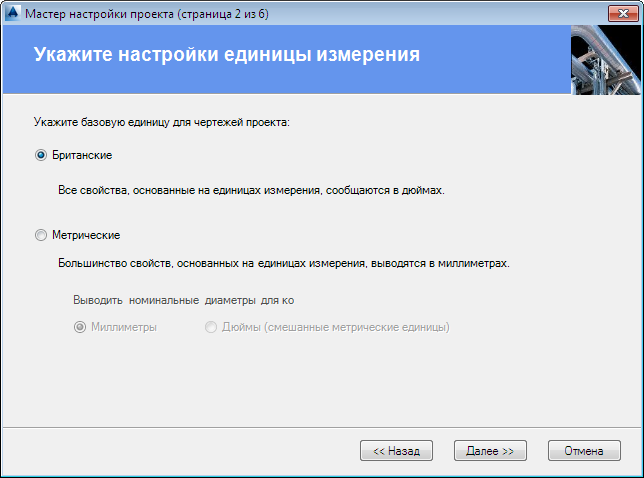 Позволяет задать основные единицы измерения для чертежей проекта: британские или метрические.