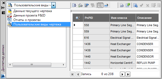В структуре Диспетчера данных данные отображаются в иерархическом порядке, выбранном администратором.