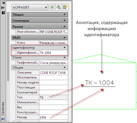 Не текст, а данные. Состоит из вложенных частей, определенных форматом идентификатора. | Текст, заданный в определении блока стиля аннотации. Этот текст может содержать свойство идентификатора компонента или сегмента линии. Этот текст является не идентификатором, а аннотацией |