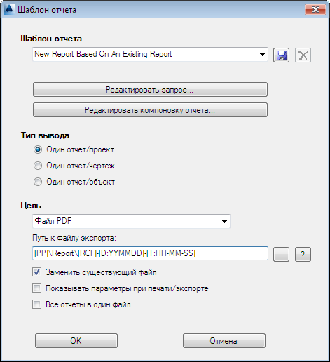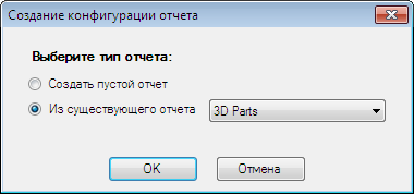 - В диалоговом окне "Новая конфигурация отчета" нажмите "Из существующего отчета" и выберите конфигурацию, которую требуется изменить. Нажмите "ОК".