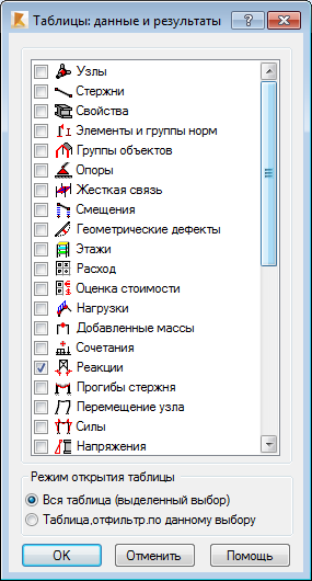 В этом разделе вы узнаете, как осуществлять вывод результатов в форме таблицы, применять к таблице фильтры для отображения определенных узлов, стержней и/или сочетаний, а также форматировать таблицу. Все таблицы используют одни и те же принципы.