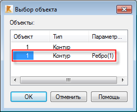 В поле Текущий выбор появится "1_Ребро(1)".