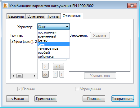 Сочетания вариантов нагружений, которые создаются автоматически, используются для проверки сопротивления и эксплуатационной пригодности для реальных ситуаций, в которых различные нагрузки действуют одновременно, так, как это определено в соответствующих нормах. При необходимости можно назначить сочетания воздействий вручную, по одному.