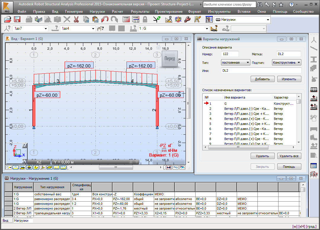 В этом учебном пособии будет показано, как создавать и применять постоянные нагрузки, в том числе нагрузки от собственного веса и равномерно-распределенные нагрузки, к 2D-конструкции.