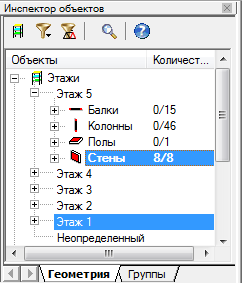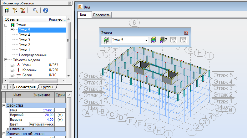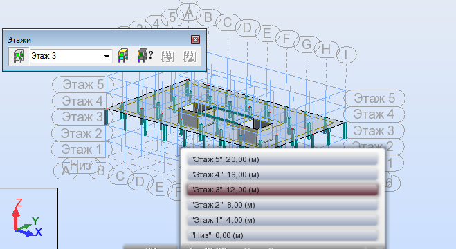(3D проекции XYZ) на панели инструментов "Вид" , чтобы вернуться к 3D-виду. Будут выбраны колонны и стены элемента "Этаж 5".