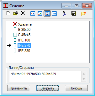 (Новый раздел) в диалоговом окне "Сечения". В диалоговом окне "Новый раздел" на вкладке Стандартные, задайте значение Семейство на IPE, а Сечение - на IPE 270. При необходимости добавьте IPE 330. Закройте диалоговое окно.