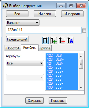 . Сочетания вариантов нагружения добавляются в "Список нагружений", как показано на рисунке ниже.