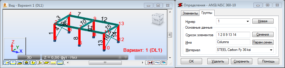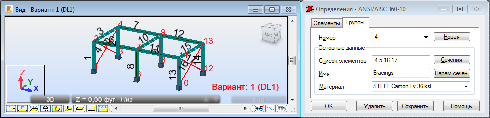 Другой способ: введите номера балок: "5 16 17" в поле Список элементов.