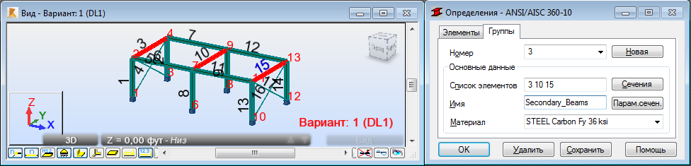 Другой способ: введите номера балок: "3 10 15" в поле Список элементов.