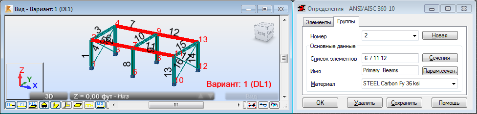 Другой способ: введите номера балок: "6 7 11 12" в поле Список элементов.