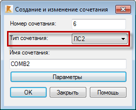 для переноса всех временных вариантов нагружений из левой панели в список вариантов в сочетании в правой панели. Комбинации нагрузок COMB1 и COMB2 будут добавлены в список определенных вариантов нагружений.