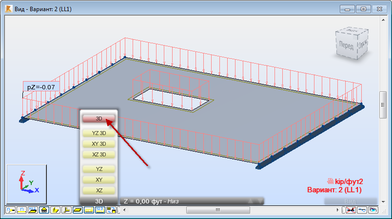 В поле "Выбор варианта" на панели инструментов "Выбор" используйте раскрывающееся меню "Варианты" и выберите 3: ЭКСП.2.