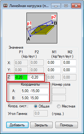 Будет открыто диалоговое окно "Линейная нагрузка (плоская)".
