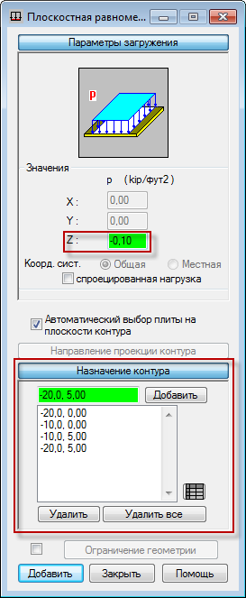 Откроется диалоговое окно "Распределенная плоская нагрузка на контур".