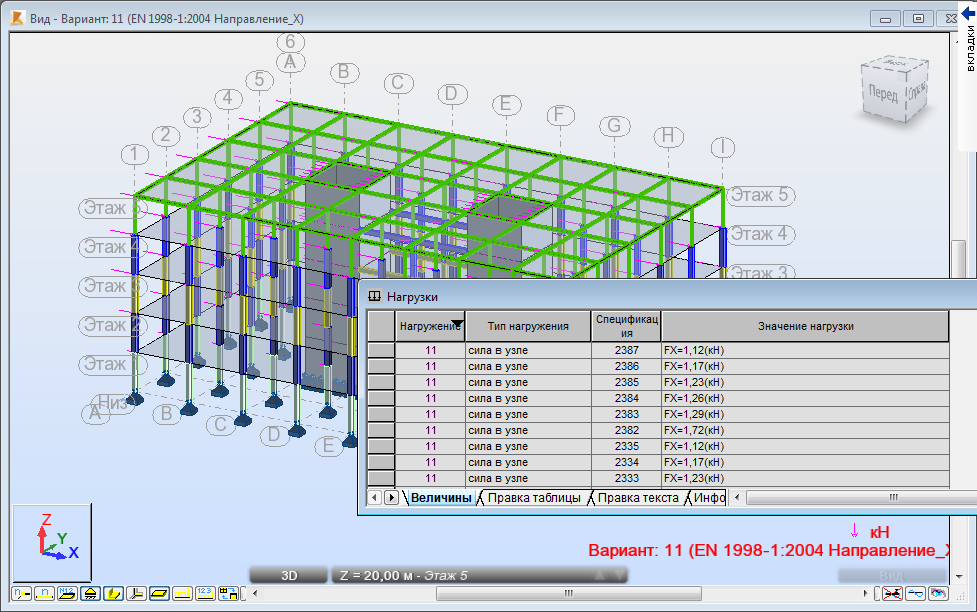 В противоположность статическому расчету нагрузки при выполнении упрощенного сейсмического расчета не задаются пользователем непосредственно, а вычисляются программой. Пользователь задает параметры в соответствии с местными строительными нормами. Затем программа рассчитывает сейсмические нагрузки и применяет их к конструкции. Это подготавливает модель к выполнению стандартного статического расчета внутренних усилий и деформаций.