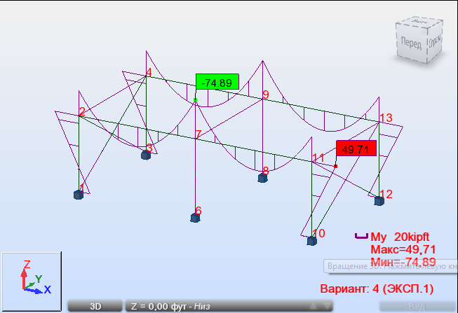 В этом разделе вы узнаете, как отображать изгибающие моменты балок для выбранного варианта нагружения.