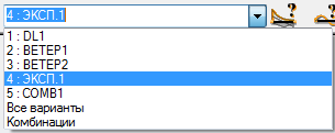 В поле "Выбор варианта" на панели инструментов "Выбор" используйте раскрывающееся меню "Варианты" и выберите 4: ЭКСП.1, как показано ниже.