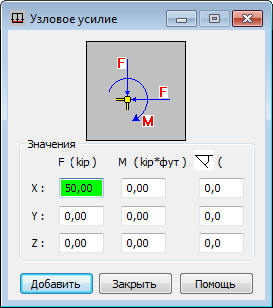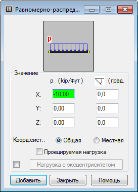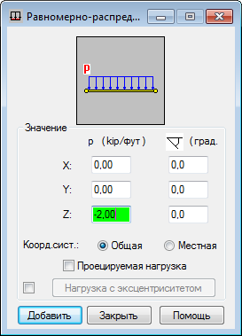Снимите флажок PX, а затем введите значение нагрузки -2 в поле PZ и нажмите Добавить.