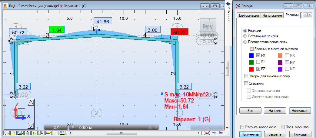 На вкладке Реакции выберите FX и FZ и нажмите кнопку Применить. Будет показана новая комбинированная диаграмма, как показано ниже.