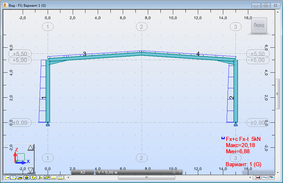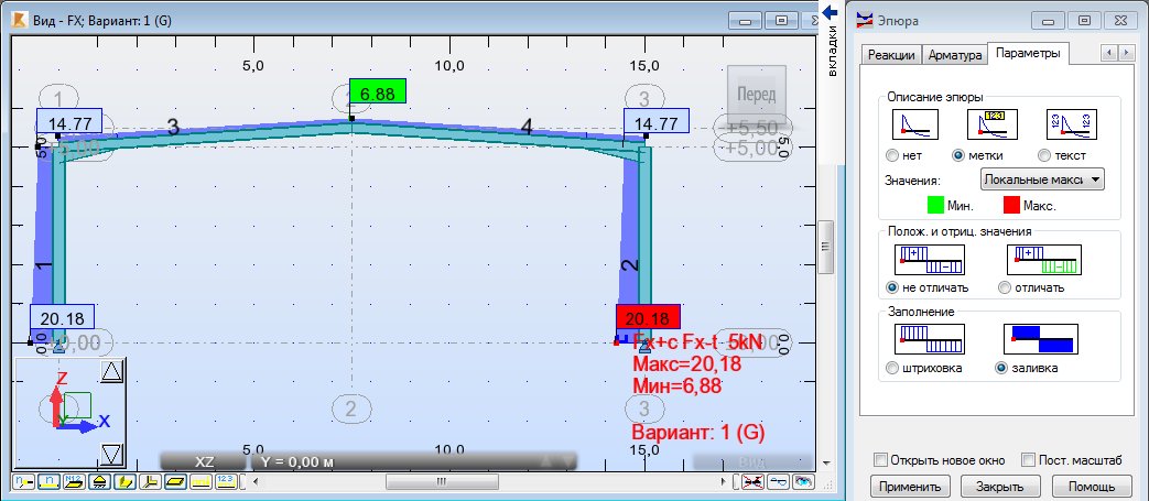 На вкладке NQM выберите Усилие Fx и нажмите кнопку Применить. На виде будут отображены силы, как показано на рисунке ниже.