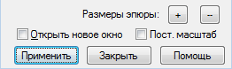 Прим.: Если требуется изменить размер компонентов эпюра, используйте кнопки "+" и "–" в нижней части диалогового окна, как показано на рисунке ниже. По умолчанию при выборе различных вариантов масштаб диаграммы не изменяется. Также вы можете открыть новое окно.