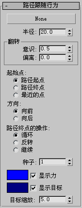 注: 通过更改“种子”值,可以改变使用相同“意识”和“偏离”设置的不同“路径跟随”行为中的行为。
