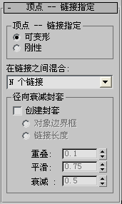 在“顶点链接指定”卷展栏中,您可以选择创建新的封套,并拾取链接之间混合的类型。