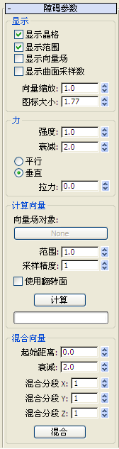 注: 只能将基本几何体和未修改的可编辑网格对象当作障碍物。同时,障碍物应被完全保卫在向量场晶格中。