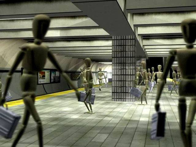 地铁站中使用 character studio 进行动画制作的一组人体模型