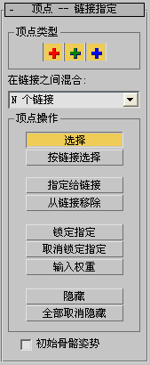 注: “选择”、“按链接选择”、“指定给链接”和“从链接删除”只对由红、绿和蓝顶点类型(“+”)按钮指定的顶点进行操作。