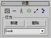第一次使用此命令面板朝场景中添加行为时,一个新的用于此行为的卷展栏会出现在“设置”卷展栏的下方。该卷展栏可用来更改行为设置。要显示场景中其它不同行为的卷展栏,可以从“行为”组的下拉菜单中选择。