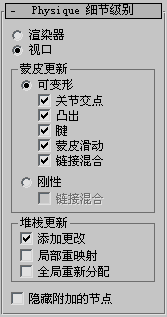 “Physique 细节级别”卷展栏中的控件不仅可以优化视口,而且可以影响渲染的效果。此卷展栏主要用于解决问题。