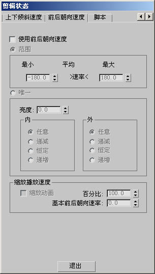 要为进行运动合成而考虑使用代理前后朝向速度时,请打开“使用前后朝向速度”,选择“范围”或“唯一”,然后进行适当的设置。