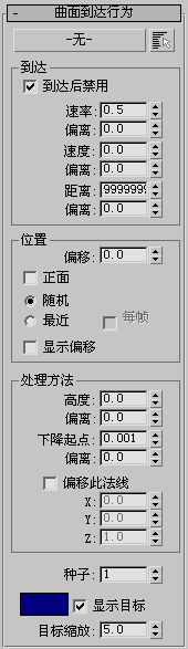 指定“曲面到达”行为的三个方面:速率、速度和距离。