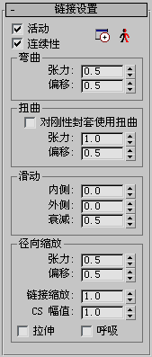 “链接设置”卷展栏上的控件允许调整所选链接的行为。