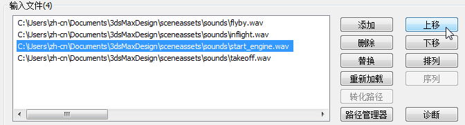 这些文件在“输入文件”组中显示为列表。虽然不强制要求按照这些文件在音频轨迹中的播放顺序来放置这些文件,但这样做很有用。