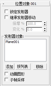 “发射器对象”组中,单击“添加”。在任一视口中,单击 Plane01 对象。