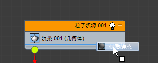 - 从仓库中,将 Material Static 操作符拖动到粒子流源 001 事件。将它置于 Render 001 操作符的正下方。将显示一条指示插入点的蓝线。