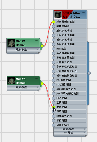 - 将新的“位图”副本关联到 Trees 材质节点的“裁切贴图”套接字。