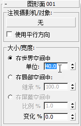 - 单击图形朝向 001 操作符,将它高亮显示。在“大小/宽度”组中,确保已选择“在世界空间中”,接着将“单位”的值更改为 40.0,然后按 Enter 键。