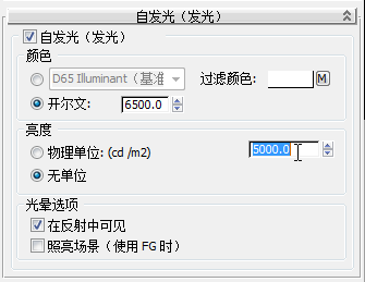 - 在“亮度”组中,保留“无单位”选择,并输入值 5000.0。