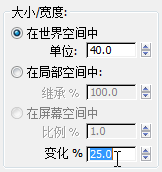 - 在“大小/宽度”组的底部,将“变化 %”的值更改为 25.0。