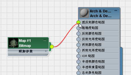 - 将新“位图”节点关联到 Trees 材质的“漫反射颜色贴图”套接字。