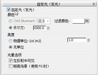 - 在“自发光(发光)”卷展栏中,启用“自发光”。