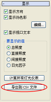 3ds Max 以 CSV 格式将“测光表”对象生成的数据保存到项目目录的 \export 文件夹中。